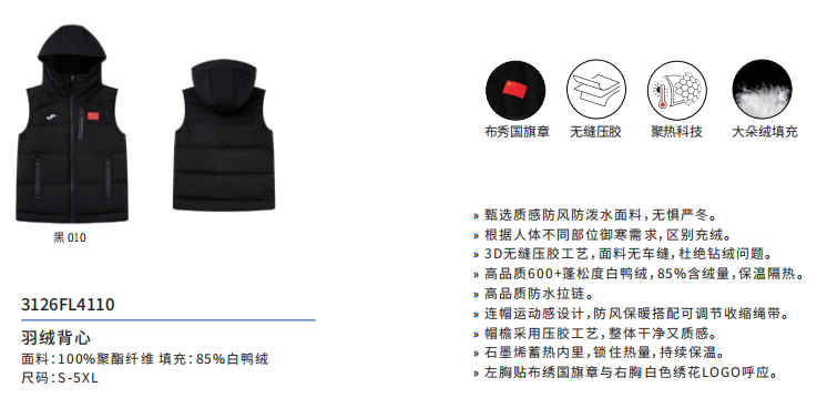 商品名称:羽绒背心3126FL4110A