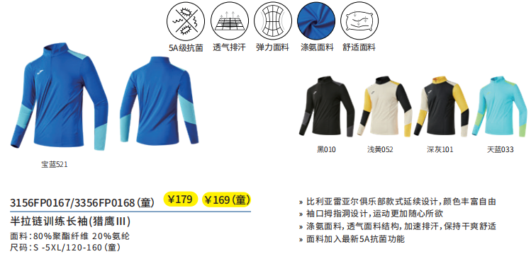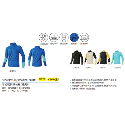 商品名称:半拉链训练长袖(猎鹰Ⅲ)3156FP0167