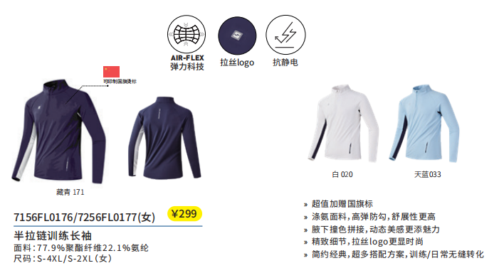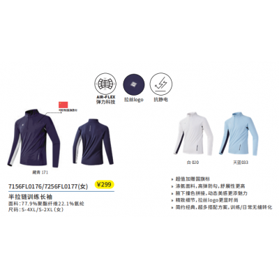 商品名称:半拉链训练长袖7256FL0177