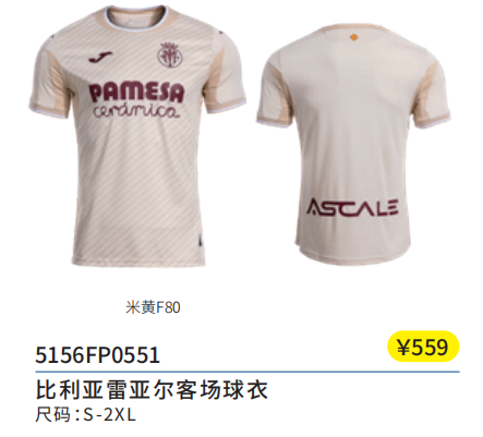 商品名称:比利亚雷亚尔客场球衣5156FP0551